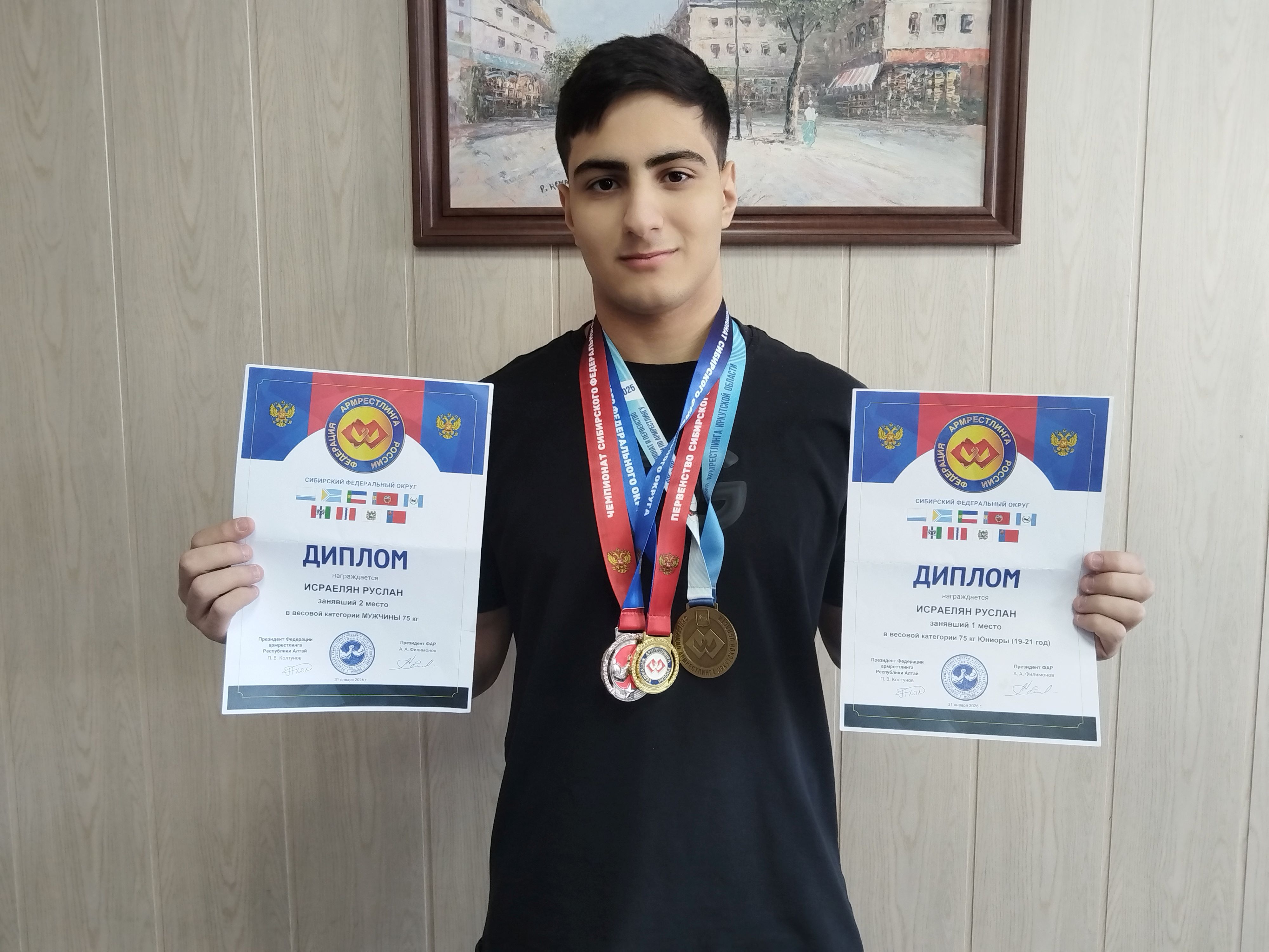 30-31 января 2026г. в городе Горно-Алтайск, прошел чемпионат и первенство среди юниоров СФО по армрестлингу. Наш обучающийся Исраелян Руслан принял участие и занял 1-е место среди юниоров и 2-е место среди взрослых. Поздравляем с победой. Так держать!!!